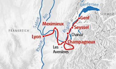 Weltbekannt ist Genf, der Ausgangspunkt Ihrer Veloreise. Die Wasserfontäne im Genfer See verabschiedet Sie aus der Schweiz und schickt Sie auf eine Tour, die abwechslungsreicher kaum sein könnte. Ihr ständiger Begleiter ist dabei die Rhône.