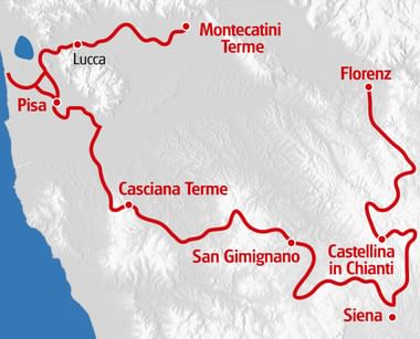 Enjoyment is at the forefront of this Italian cycle tour. Be it the sight of the dreamlike landscapes, or trying out local specialties. On the bike saddle you will experience pure Italian life. Do you dream of narrow streets, a good glass of wine and authentic Italian cuisine? In Florence, Pisa and Siena your dream becomes a reality. The tour also leaves plenty of time to explore the historic towns of northern Italy and become captivated by the Italian culture.
